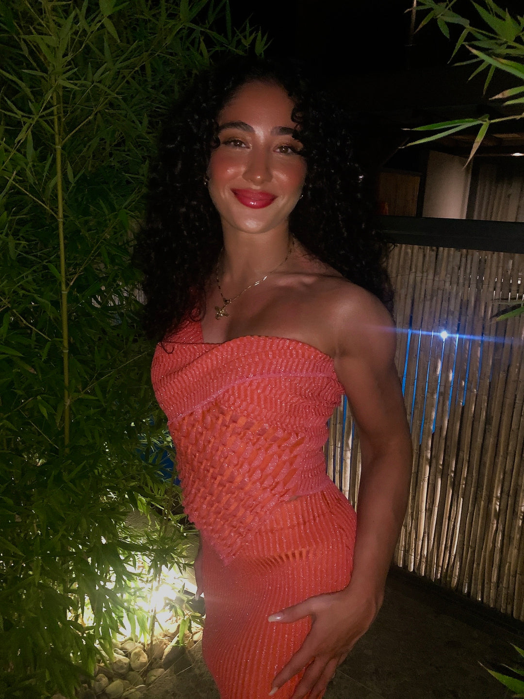 The Signature Sculptural One Shoulder Top in Coral Sunset is the outfit. With its body-contouring fit, one-shoulder silhouette, and 3D sculptural knit texture, it flatters from every angle and turns heads without saying a word. Maximum drama, minimal effort.